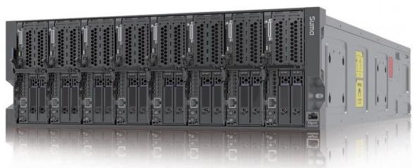 八个刀片计算节点,配备两颗海光7000系列处理器(最高64物理核心、128线程),具备大容量三级缓存(最高64M)。每个节点配备16根DDR4 DIMM,内存容量最高可达2TB。支持板载SATA3.0控制器,可选扩展SAS/RAID控制器,支持RAID0和RAID1。配备2个本地2.5英寸盘位,以及2个板载SATA M.2 SSD。
